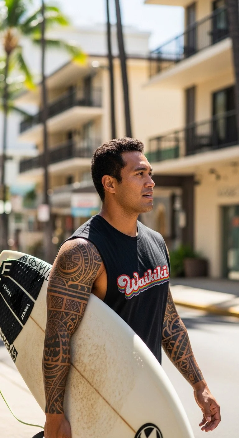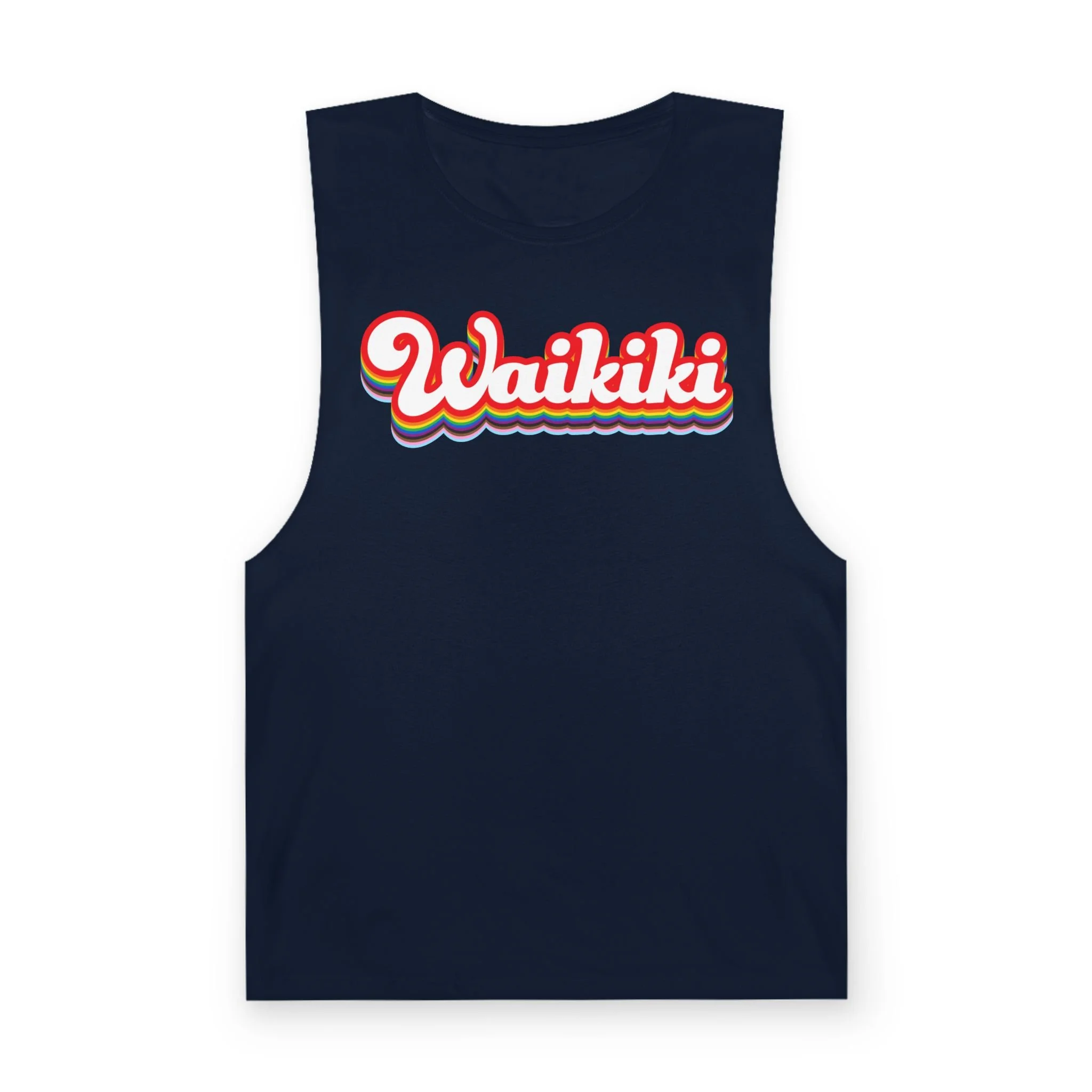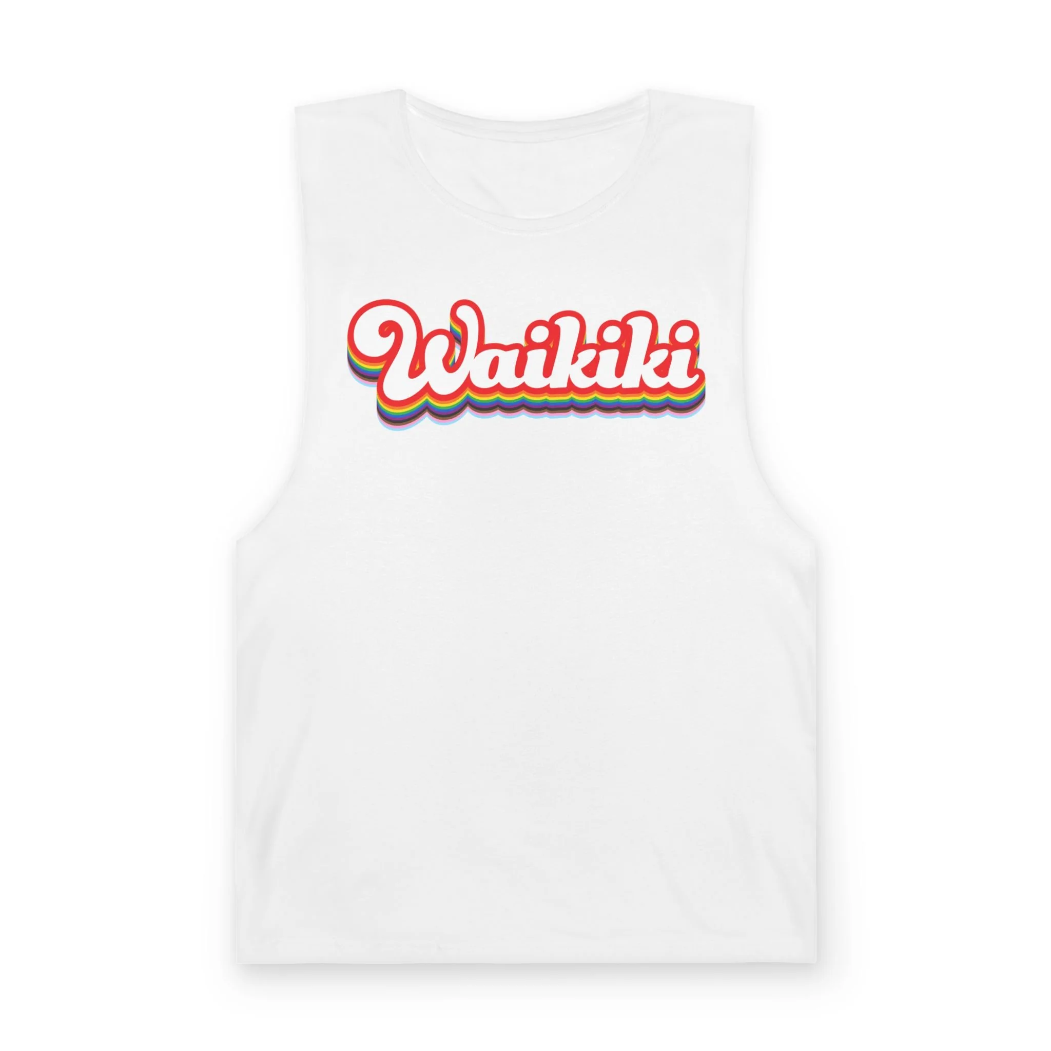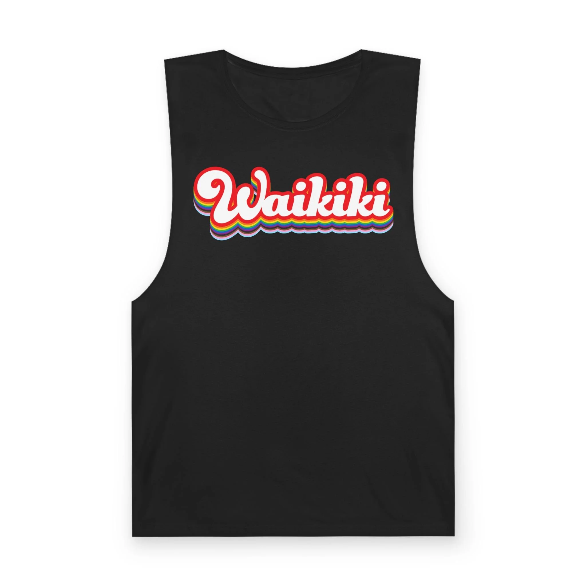 This design takes a familiar name and turns up the volume, layering in color, energy, and just enough attitude to feel right the second you put it on. It’s easy, it’s bold without trying, and it belongs everywhere from a packed bar to a late-night walk home. Tank or tee, it’s built for being seen—because in Waikiki, blending in was never really the plan.